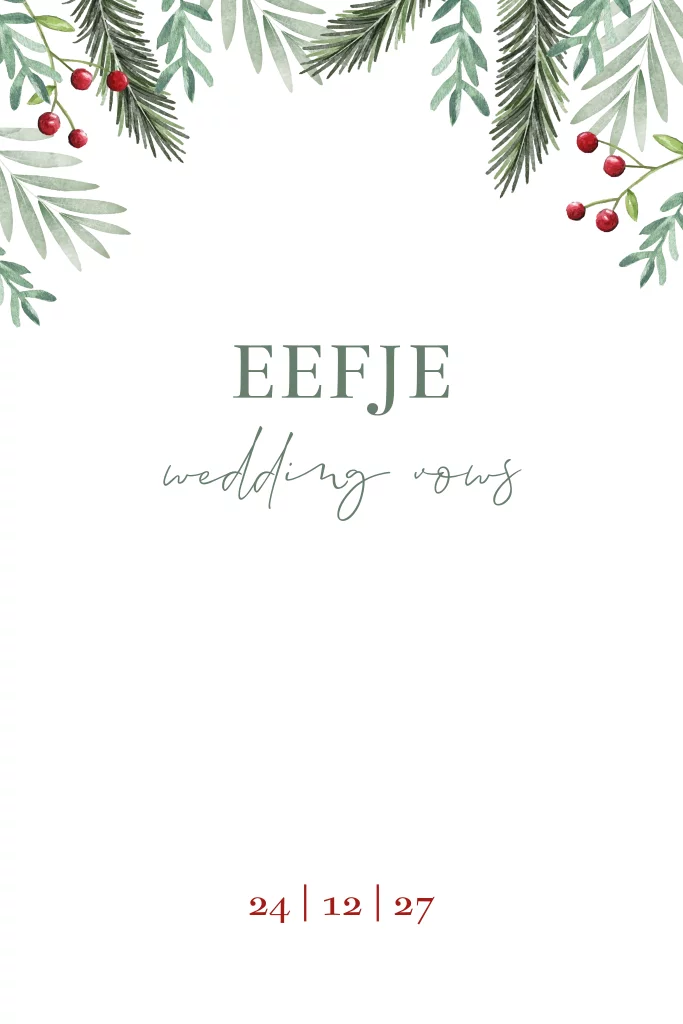 Geloftenboekje bruiloft kerst takjes groen her vows