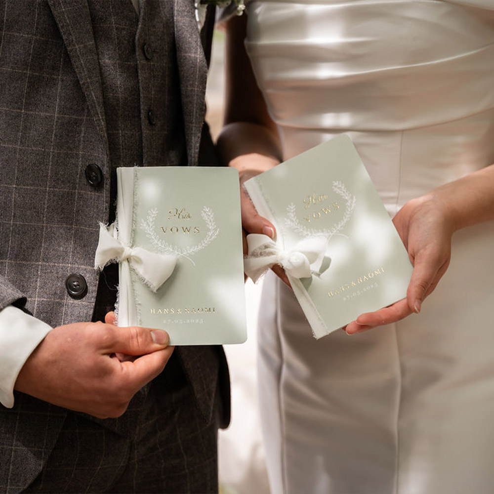 Geloftenboekje met takjes en goudfolie voor bij de ceremonie van jullie bruiloft. Vul jullie geloften helemaal in de stijl van jullie trouwkaart in, zodat alles mooi in één stijl is! Versie: His Vows| Totaalprijs: 0 |