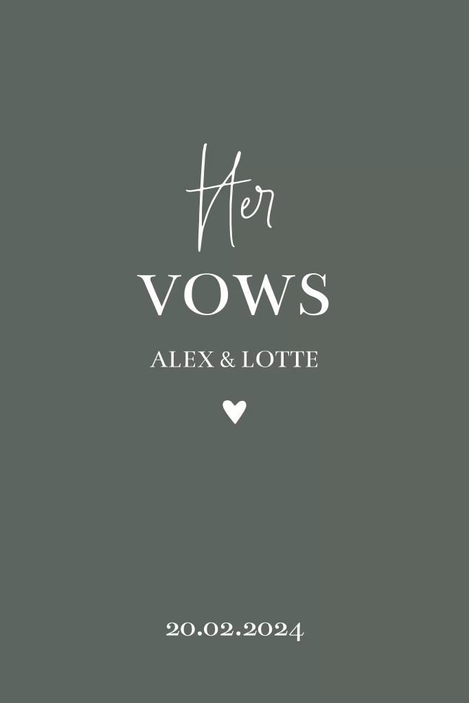 Een mooi geloftenboekje in een groene kleur met goudfolie, voor tijdens de ceremonie. Schrijf hierin de geloften voor op jullie bruiloft. Pas de kleuren aan naar die van jullie trouwkaart, zodat alles bij elkaar past! Versie: Her Vows