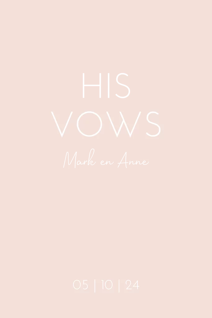 Geloftenboekje in een lichtroze kleur met goudfolie, voor tijdens de ceremonie. Schrijf hierin de geloften voor op jullie bruiloft. Pas de kleuren aan naar die van jullie trouwkaart, zodat alles bij elkaar past! Versie: His Vows