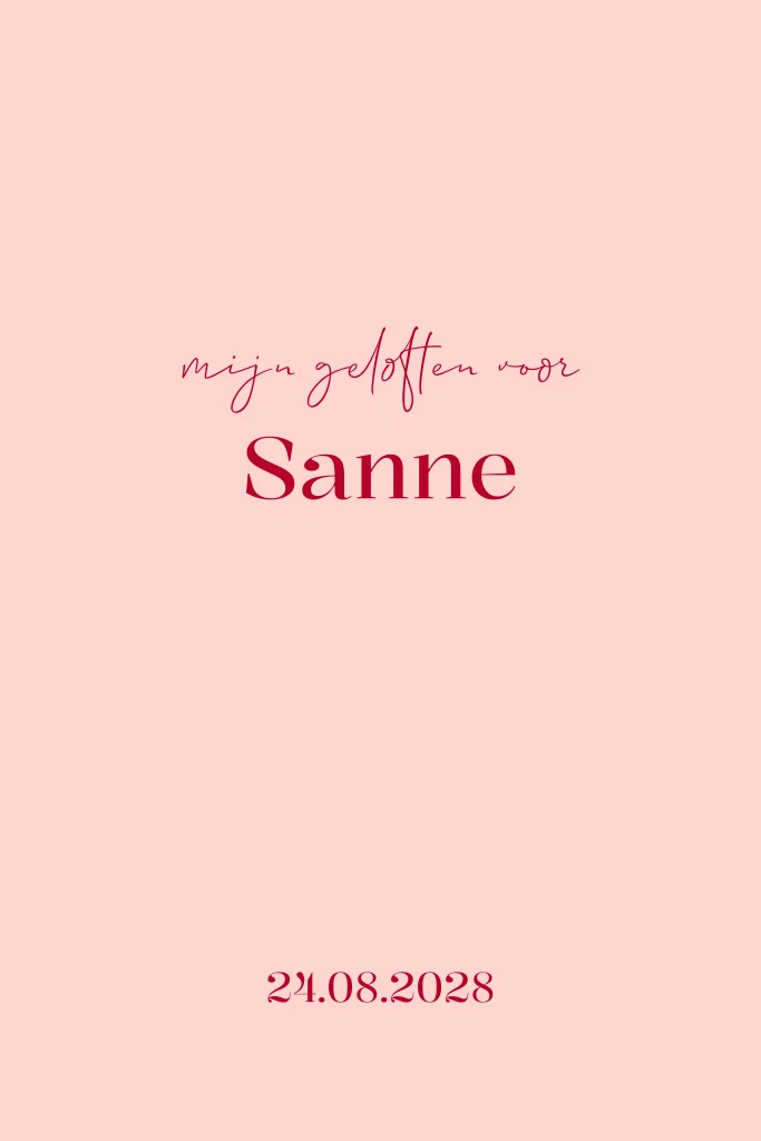 Modern geloftenboekje in een roze kleur met rode letters. Schrijf hierin jullie geloften voor op jullie bruiloft. Pas de kleuren aan naar die van jullie trouwkaart, zodat alles bij elkaar past! Versie: His Vows