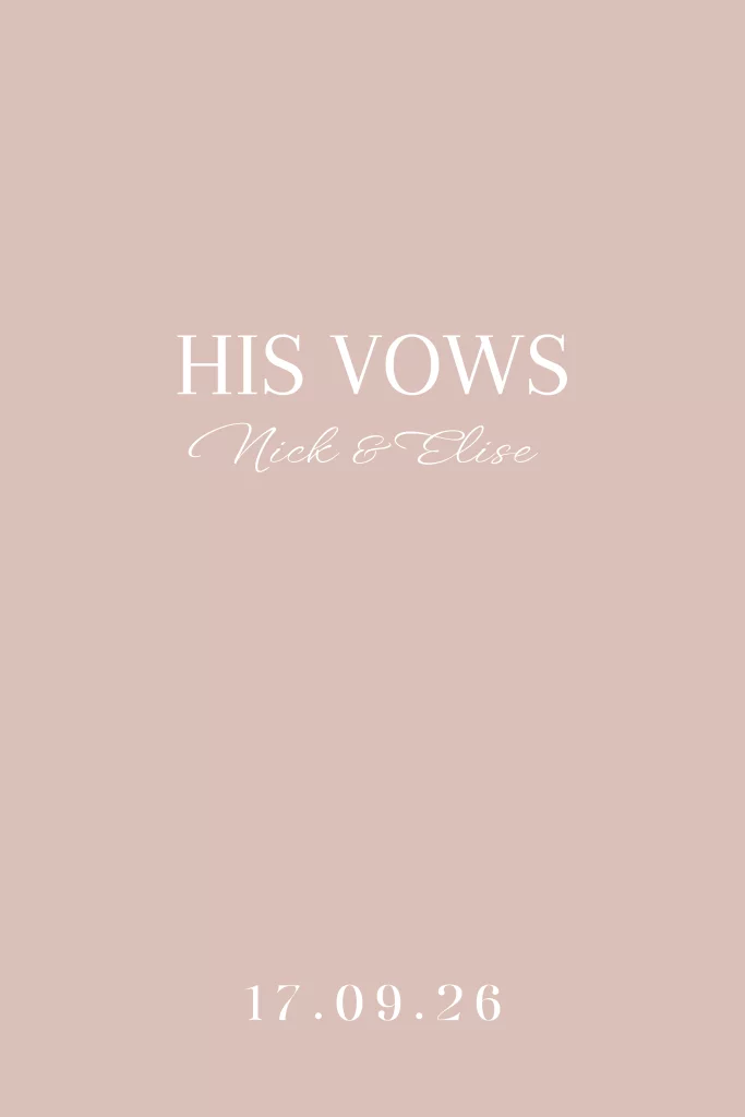 Oudroze geloftenboekje met witte letters voor tijdens de ceremonie. Schrijf hierin de geloften voor op jullie bruiloft. Pas de kleuren aan naar die van jullie trouwkaart, zodat alles bij elkaar past! Versie: His Vows