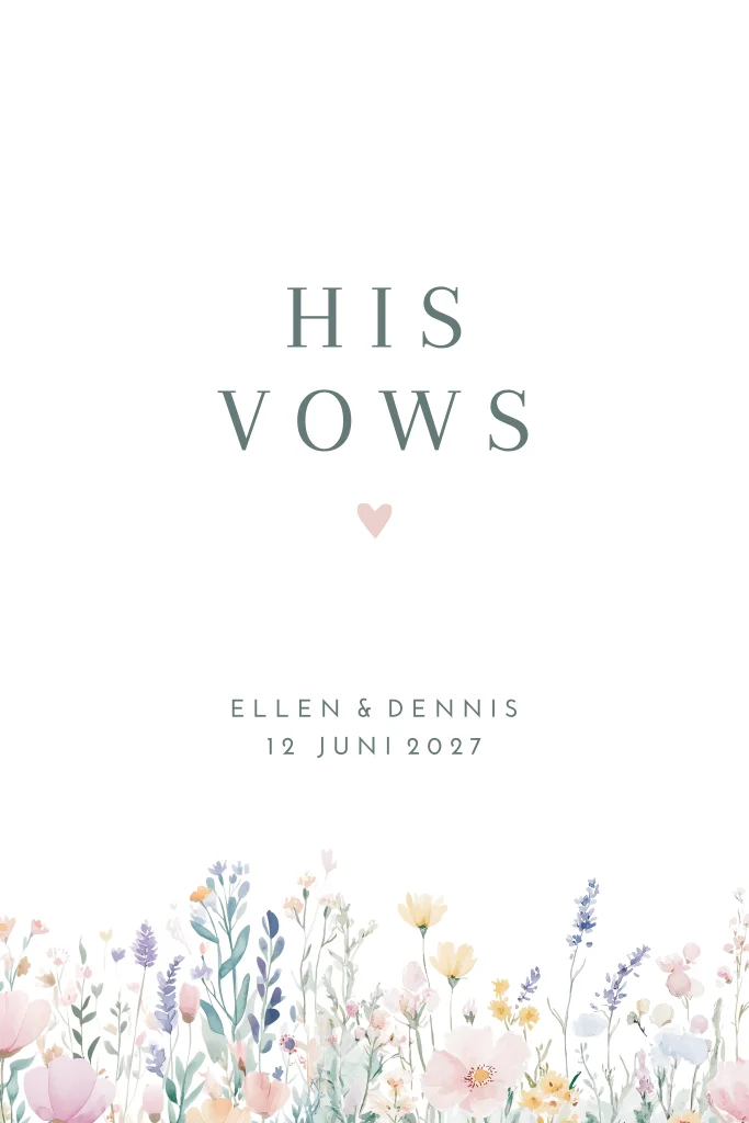 Geloftenboekje met romantische bloemen voor bij de ceremonie van jullie bruiloft. Vul jullie geloften helemaal in de stijl van jullie trouwkaart in, zodat alles mooi in één stijl is! Versie: His Vows