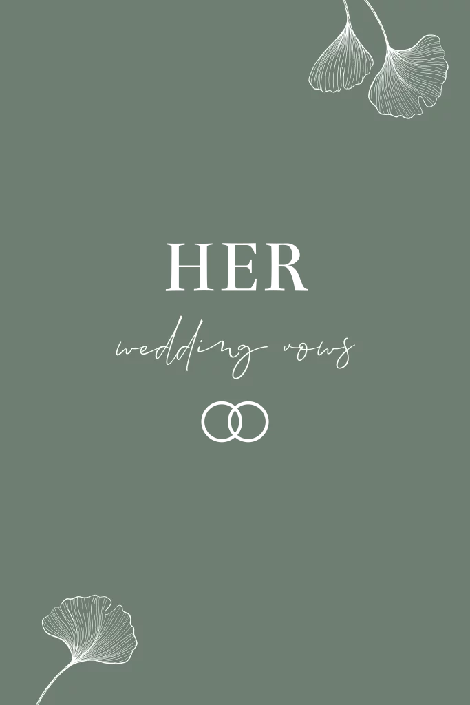 Geloftenboekje met groene achtergrond, rosefolie en ginkgo blaadjes. Super mooi als de geloftenkaart voor tijdens de ceremonie op jullie bruiloft mooi bij het trouwdrukwerk past! Versie: Her Vows