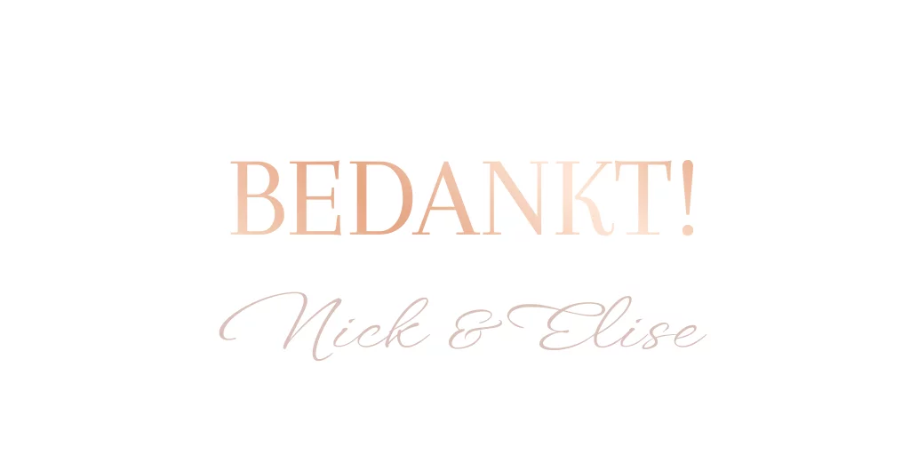 Voeg een mooi labeltje toe met een lintje aan de bedankjes op jullie bruiloft! Dit labeltje heeft letters in rosefolie. Het label heeft een formaat van 35x70 mm. Specificaties: - Formaat: 35x70 mm - 10 labels per vel - Papiersoort: coated karton