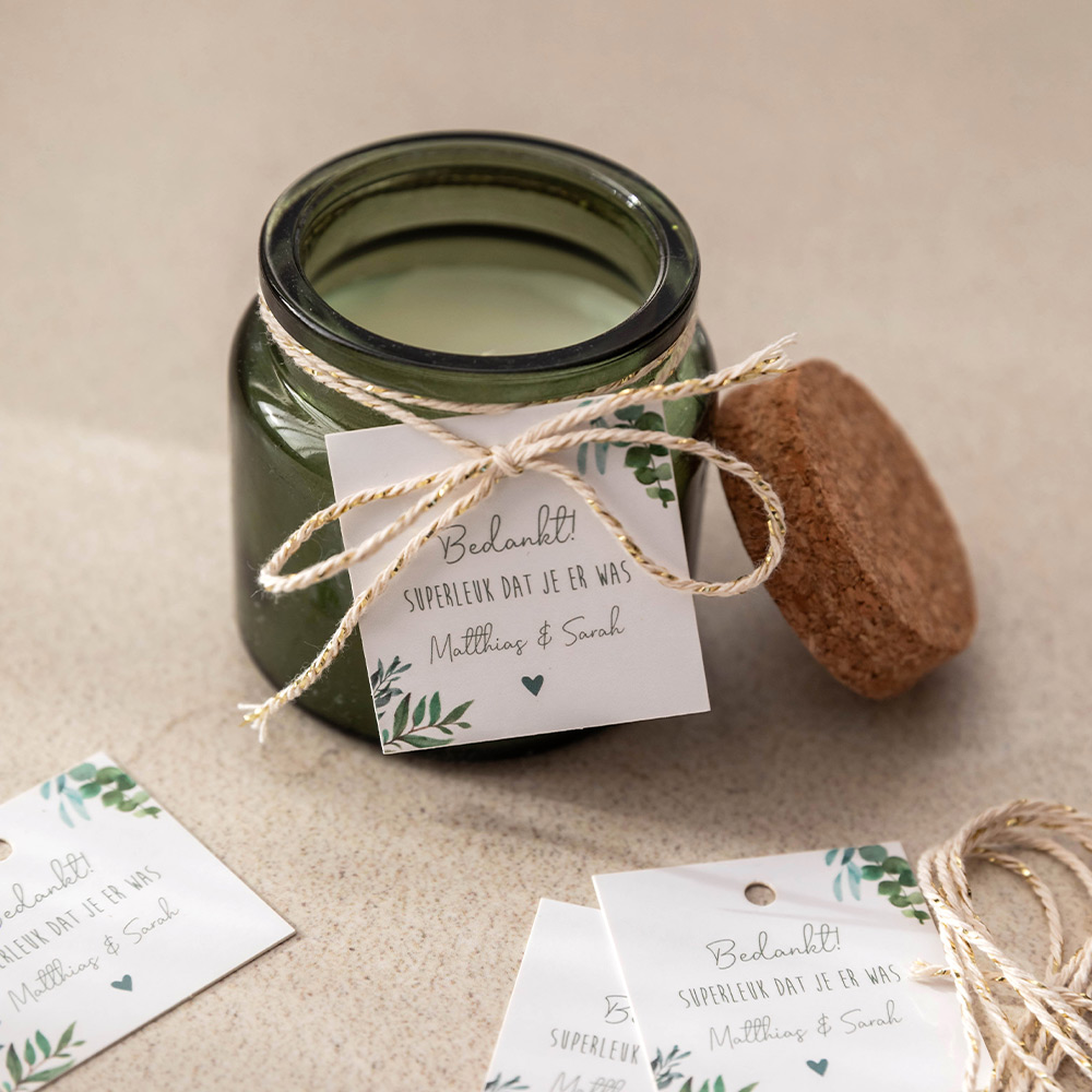 Labeltjes bedankjes bruiloft botanisch takjes