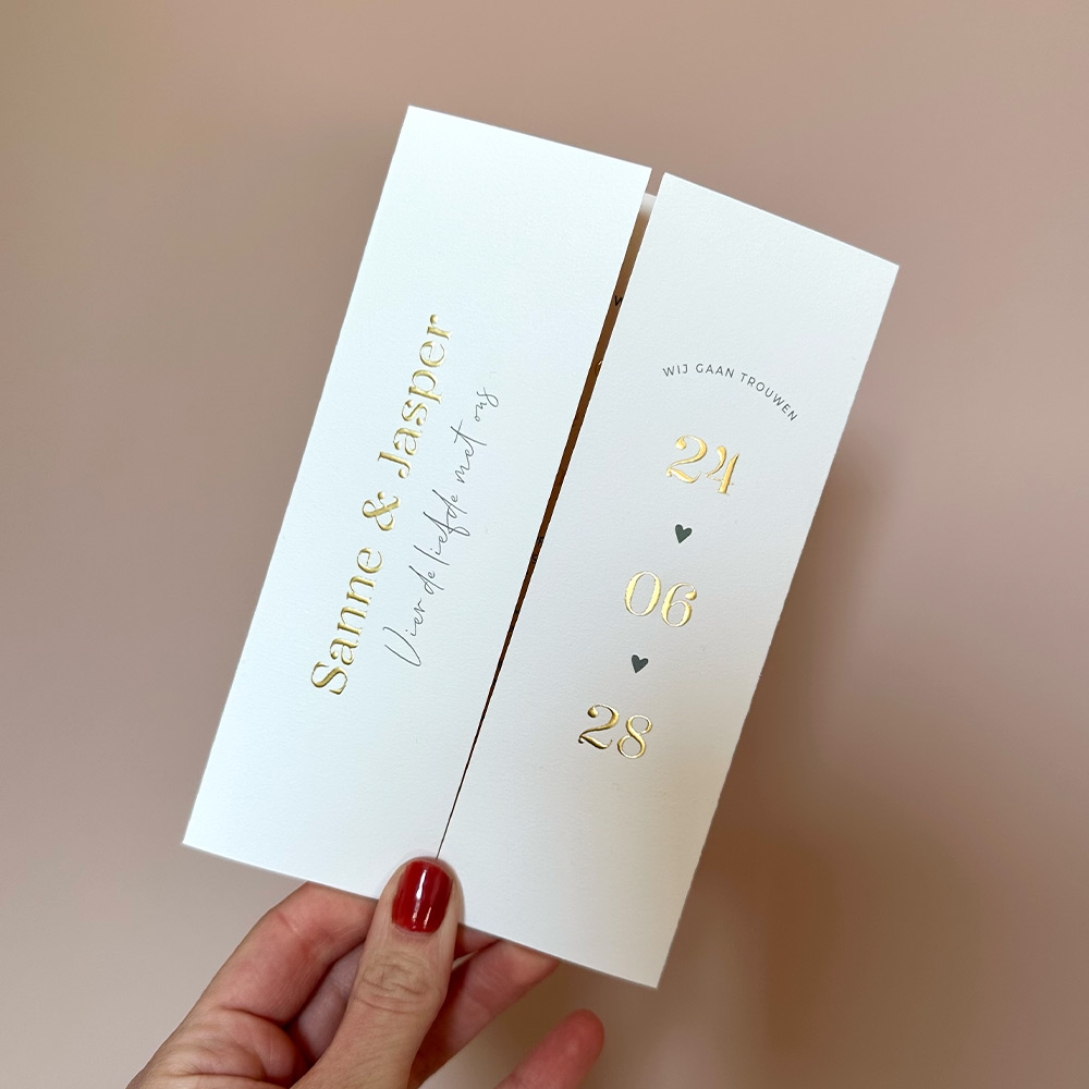 Trouwkaart luikvouw creme goudfolie