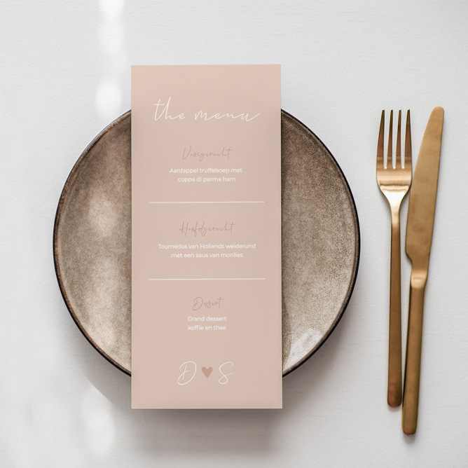 Menukaart romantisch peach met trouwlogo