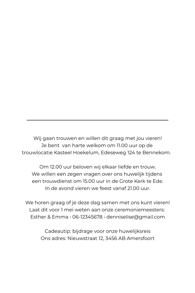 Deze moderne inlegkaart voor een pocketfold mapje heeft sierlijke goudfolie letters. Je drukt het kaartje af op 11x17 cm. Laat de achterzijde van het kaartje leeg, want deze plak je vast in het pocketfold mapje.