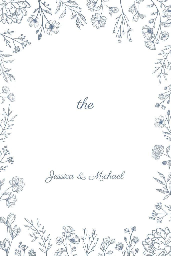 Klassieke save the date kaart met een rand van getekende blauwe bloemen met goudfolie. De kleuren van de kaart kun je naar wens aanpassen, zodat de save the date mooi bij de trouwkaart matcht!| Totaalprijs: 0 |