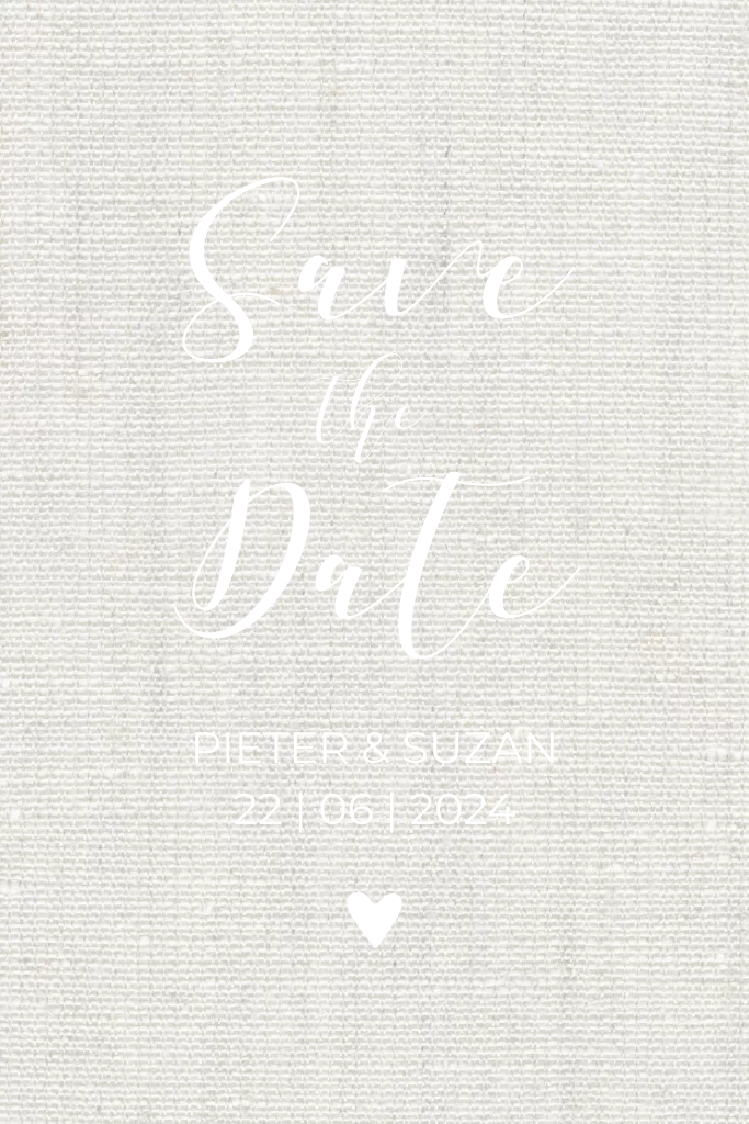 Save the Date kaart met linnen look achtergrond en goudfolie. Met een Save the Date kunnen jullie alle gasten alvast op de hoogte stellen van jullie datum. Extra leuk om de Save the Date kaart in dezelfde stijl als de trouwkaart te maken!