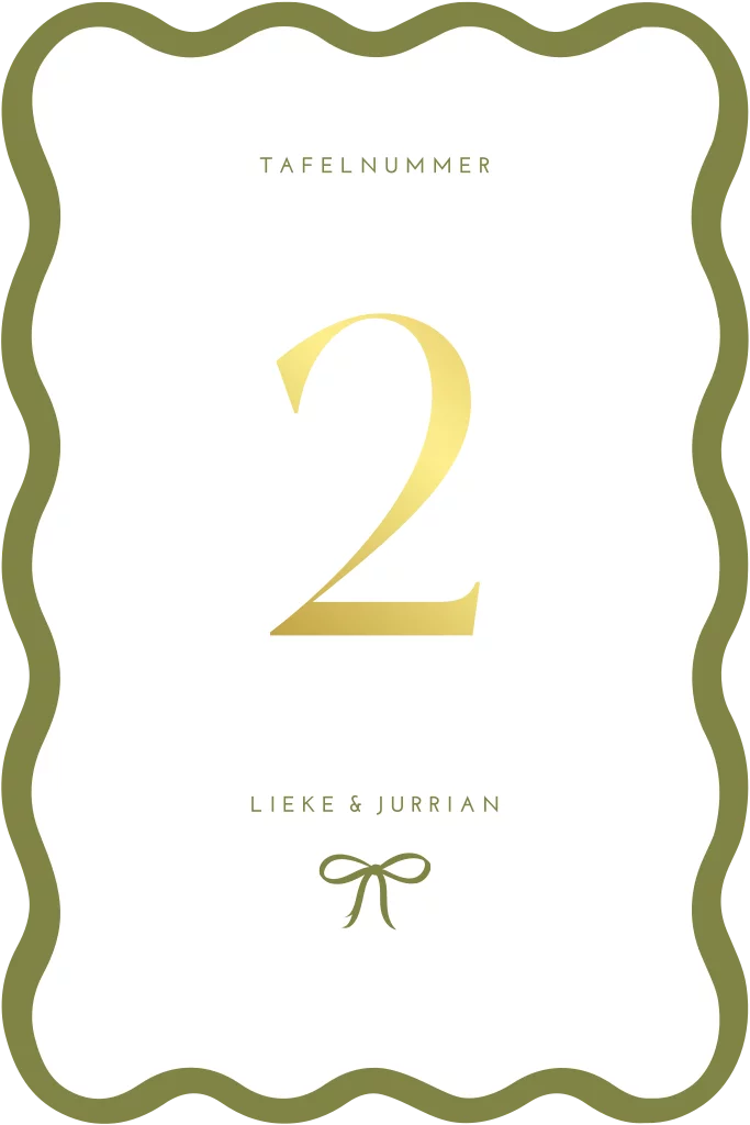 Ontwerp tafelnummer kaarten voor op de dinertafel van jullie bruiloft. Pas het ontwerp naar wens aan en vul de cijfers in. Maak een kopie van het ontwerp als je meerdere tafelnummer kaarten nodig hebt. Thema: Chic Bow