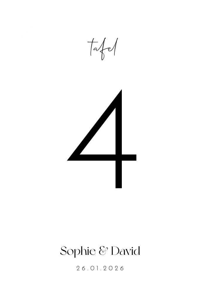 Ontwerp mooie tafelnummer kaarten voor op de dinertafel van jullie bruiloft. Pas het ontwerp naar wens aan en vul de cijfers in. Maak een kopie van het ontwerp als je meerdere tafelnummer kaarten nodig hebt. Thema: Modern Chic.