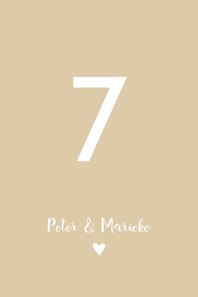 Ontwerp mooie tafelnummer kaarten voor op de dinertafel van jullie bruiloft. Pas het ontwerp naar wens aan en vul de cijfers in. Maak een kopie van het ontwerp als je meerdere tafelnummer kaarten nodig hebt. Thema: Golden Days
