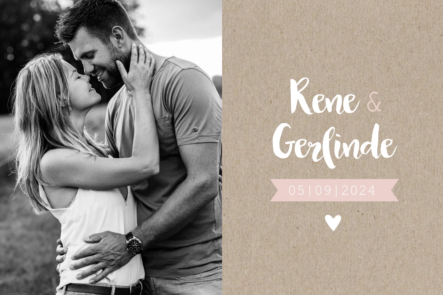 Trouwkaart met kraft achtergrond en foto loveshoot