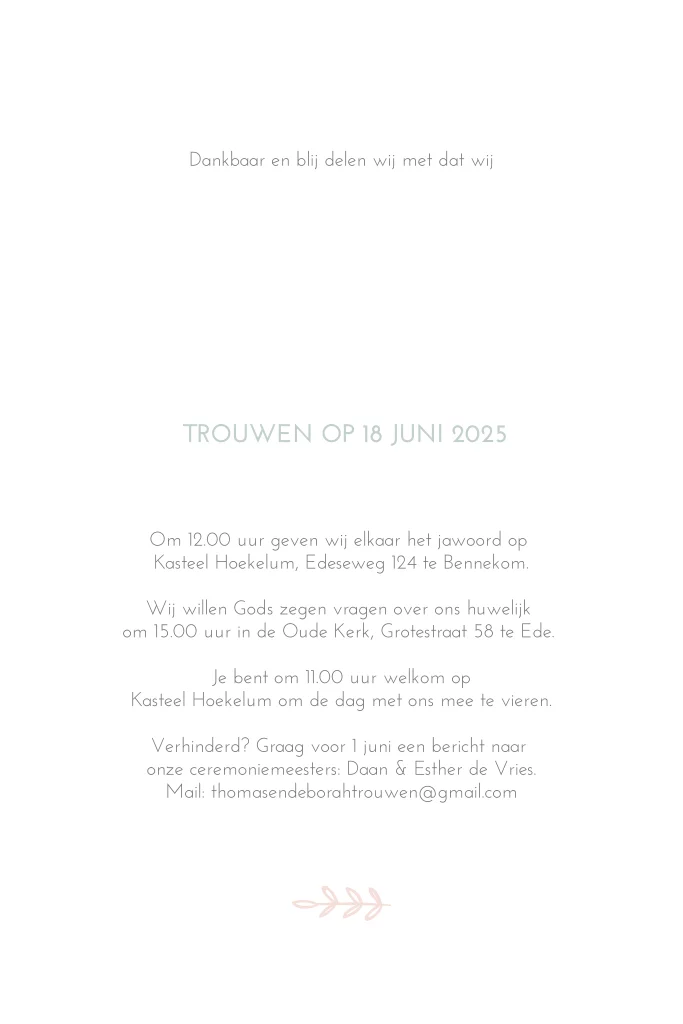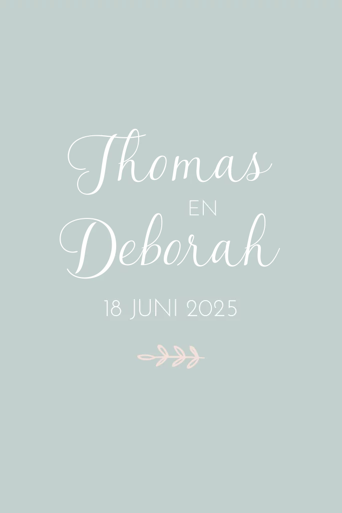 Trouwkaart mint met takje, dagprogramma en goudfolie