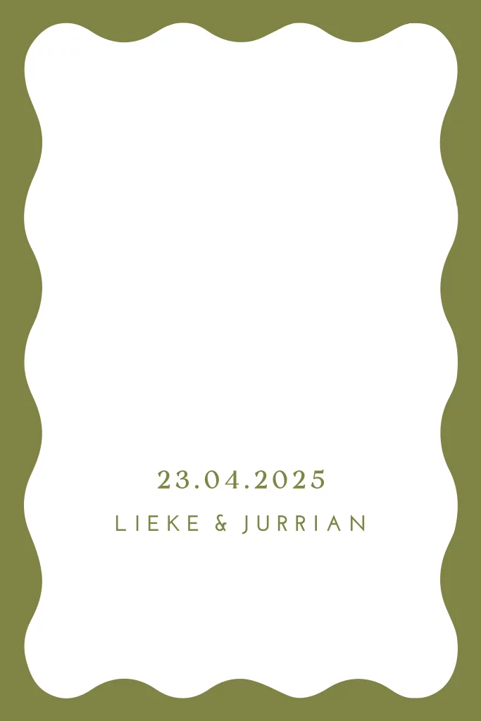 Moderne verlovingskaart met golvende vorm in een groen en gouden kleur. Op de achterzijde is plaats voor een verlovingsfeest uitnodiging. Pas de kleur van de kaart naar wens aan. Passend bij de trouwhuisstijl Green Elegance.